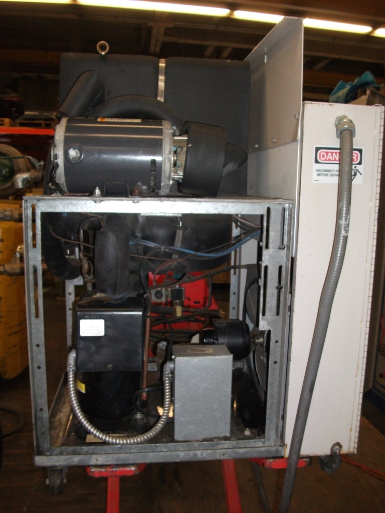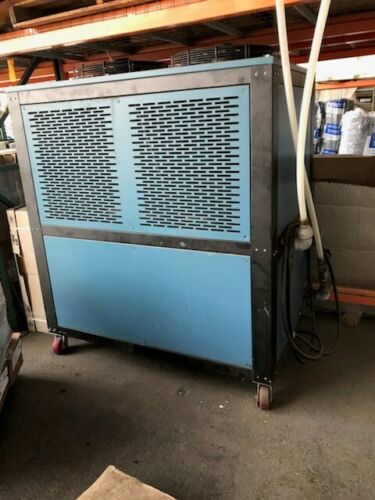 We have this perfect condition NEVER USED 5 ton Drake Air Cooled Process Chiller. It is older, proven and rock solid, R22 refrigerant, which is indeed still available for used and/or existing equipment. This chiller has NEVER been used and has 0 hours on it. It is 208/220 volt single phase power, and outdoor rated. We will run and test thoroughly in our shop prior to shipping. For someone who wants to save some money and is capable of using or repurposing their own water or glycol tank (or maybe to chill your existing central reservoir), and get a 1.5 or 2 hp centrifugal pump to mount adjacent to tank, this is a great find for you.