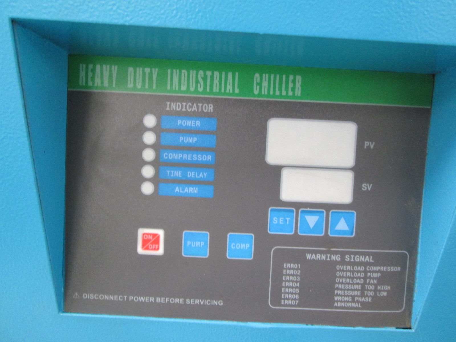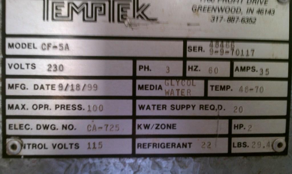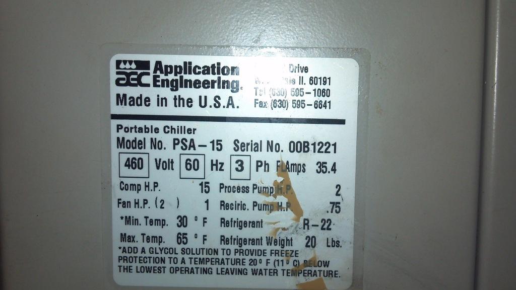 Design Operating Temp: We typically configure these units to run and chill water/fluid in the 48°F to 85°F range. It is not a low temperature glycol chiller, but please let us know your application details. Chillers are all we do.