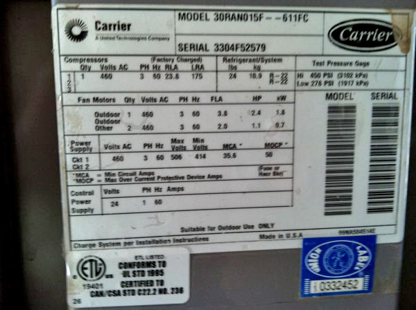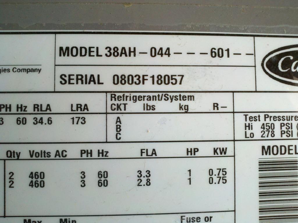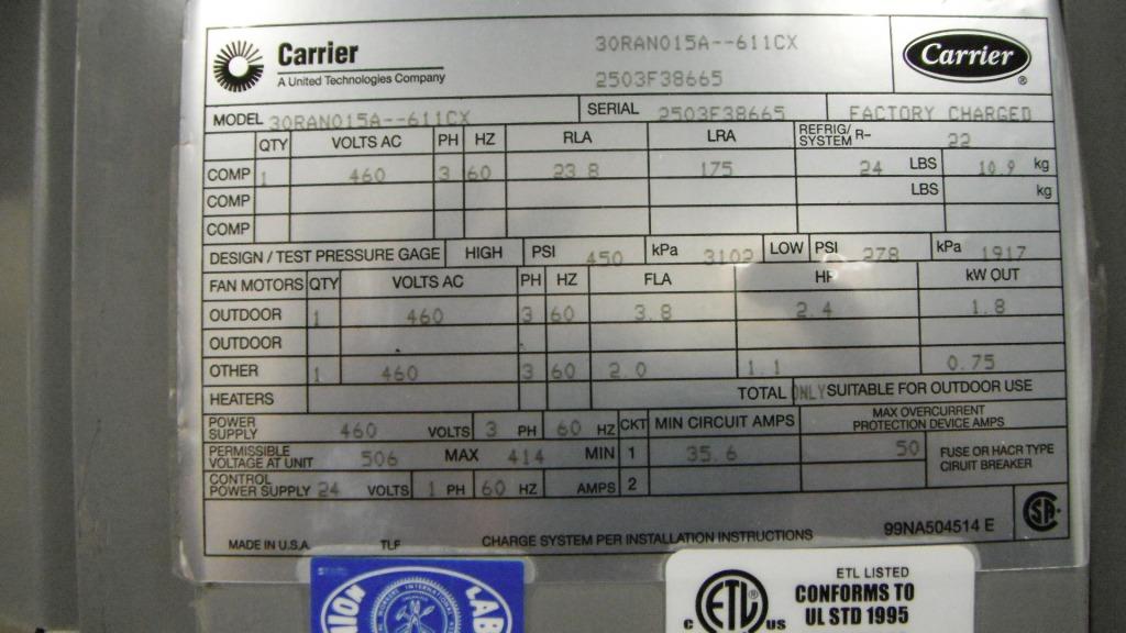 Model: 30GTN100---631KA; Serial: 2904F45712; 460 Volt