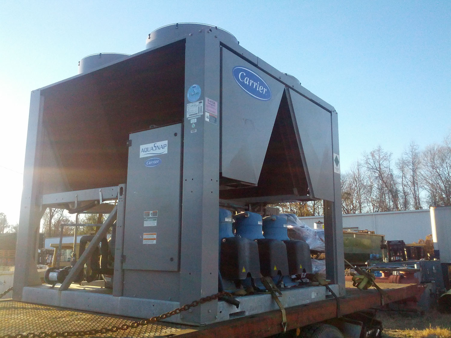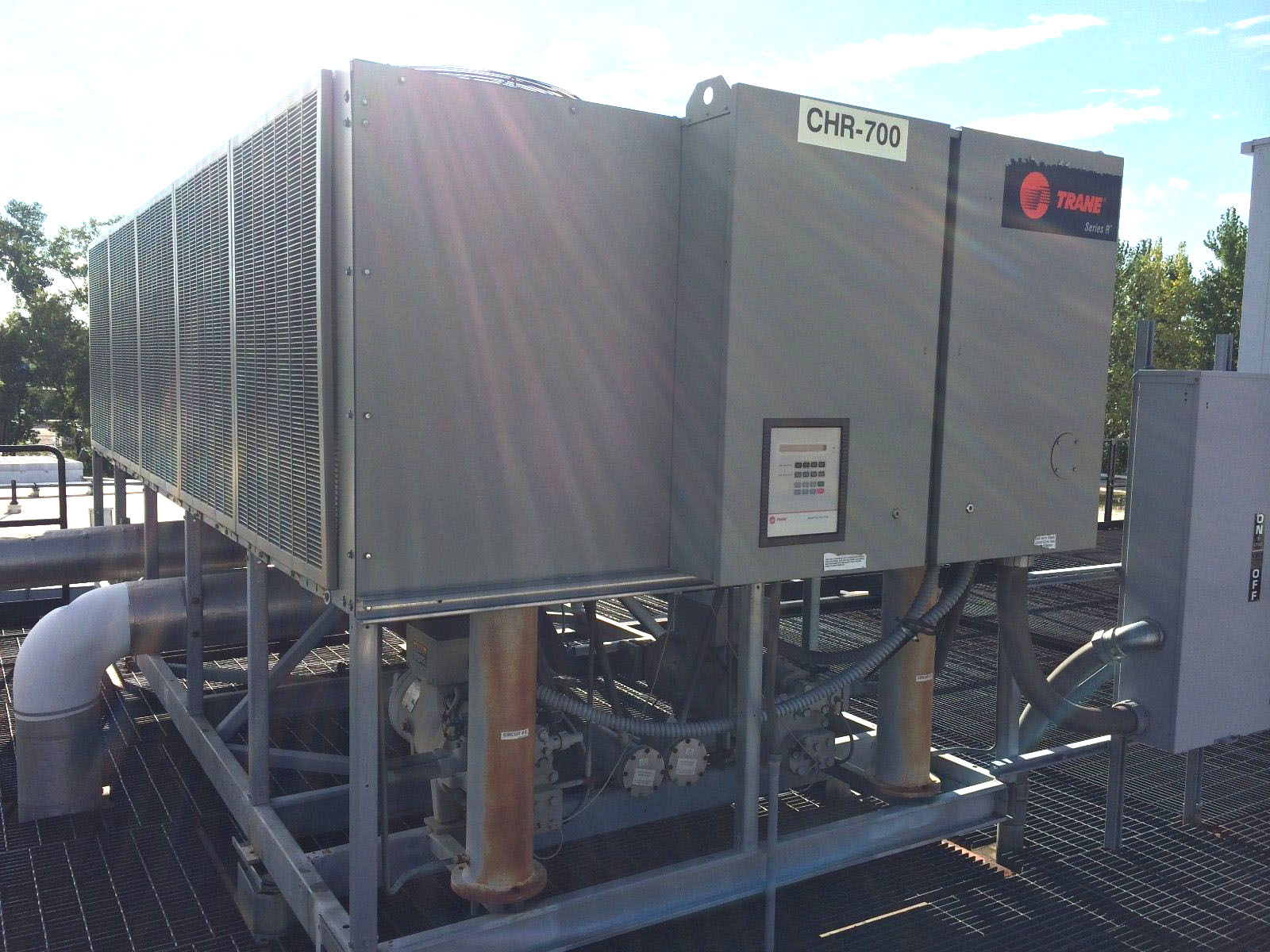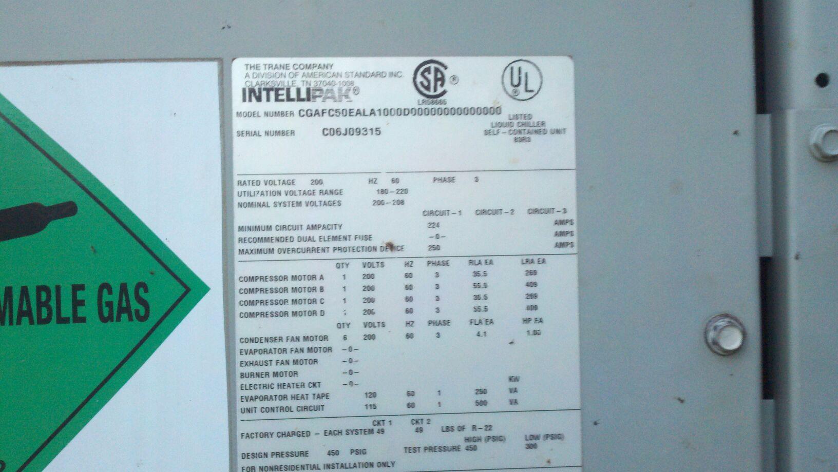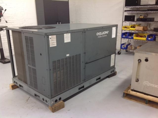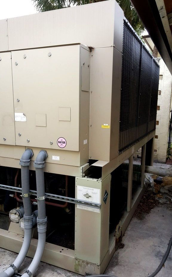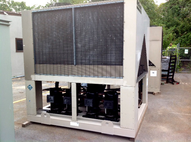 Arrived at KIG in March 2016 was this nice Trane RTAA 125 Air Cooled Chiller with Dual Rotary Screw Compressors and R22 refrigerant. These are workhorses in the industry if you are familiar with chillers.