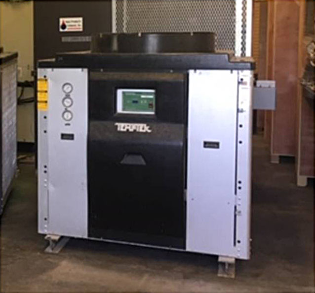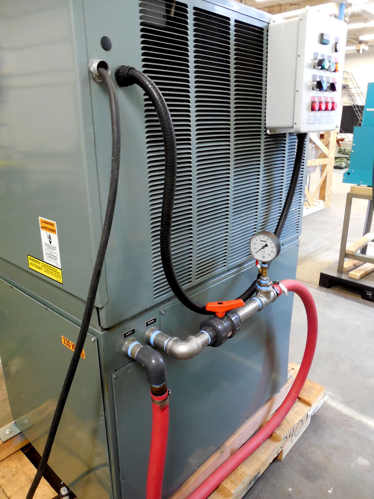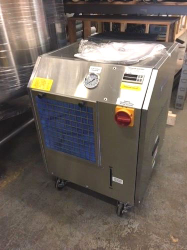Arriving in January of 2022 is this nice 2018 Thermal Care NQV series 10 ton air cooled chiller. This unit features a variable speed drive 10 ton compressor and plc/touch screen controls. Chiller is a packaged with a 2 hp pump and 22 gallon reservoir and can chill glycol down to 20°F.