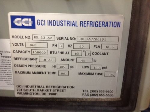(2) Compressors, 460 volts, 60 Hz, 3 phase.