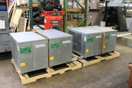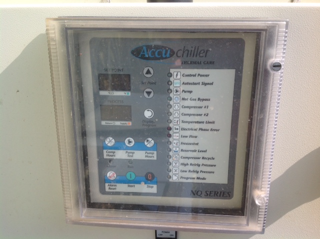 Arrived to KIG in January 2020 is this pair of nice Thermal Care 20 ton Air Cooled Chillers. Units are 2012 and have dual compressors, hefty 5 hp process pump, insulated tank, and upgraded to the NQ series touch screen control. We will run and test each unit thoroughly before shipping. Will separate and sell each unit individually, upon request.
