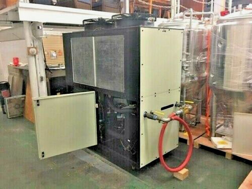 Arrived December 2021 is this nice 2011 Cold Shot / Zarsky 7.5 ton Air Cooled Chiller. Unit has been run and tested and checked. It is 208/230 volt 3 phase power, has scroll compressor, R410a refrigerant, and standard 44°F setpoint. We can modify this unit for a 28°F brewery application for a fee. It is outdoor rated and has insulated tank and 2 hp pump. We have provided dozens of this exact workhorse chiller over the years.