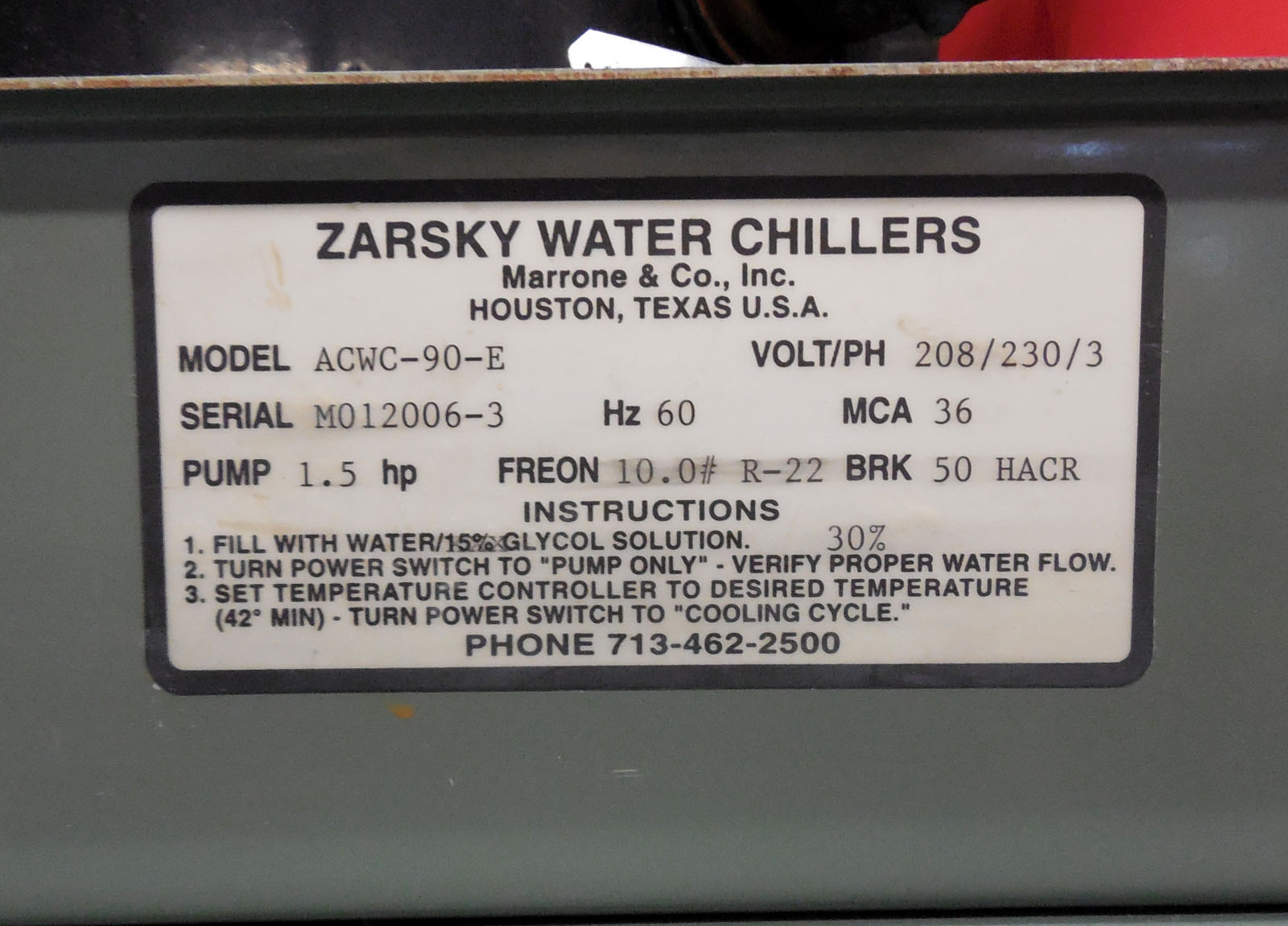 7.5 ton | 2011 Cold Shot / Zarsky 7.5 ton Air Cooled Glycol Chiller, 230V, Run, Tested & Guaranteed